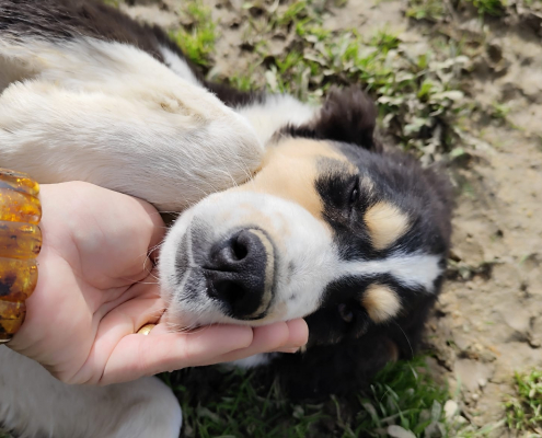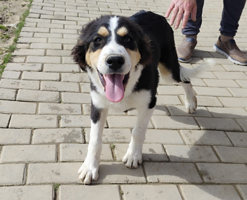 Berni ist aktuell ca. 50 cm hoch, geimpft, gechipt, kastriert.
